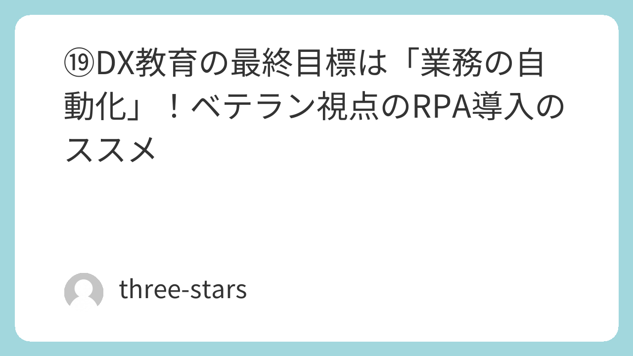 ⑲DX教育の最終目標は「業務の自動化」!ベテラン視点のRPA導入のススメ