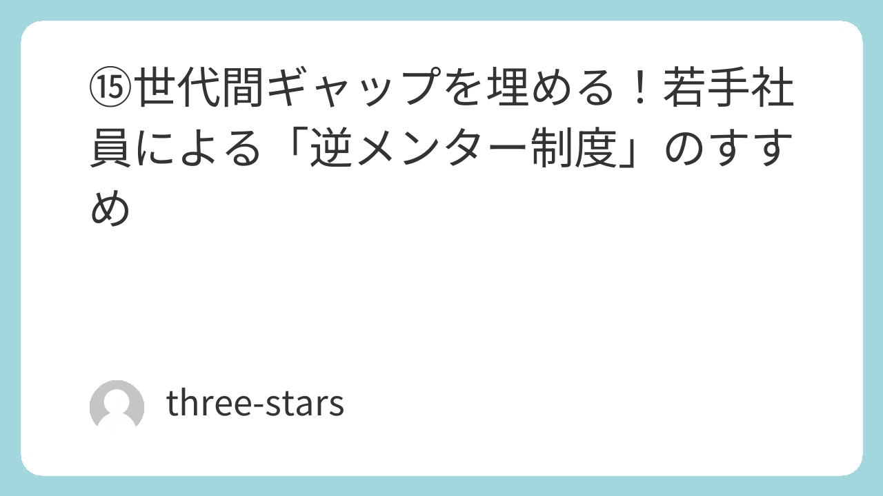 ⑮世代間ギャップを埋める!若手社員による「逆メンター制度」のすすめ