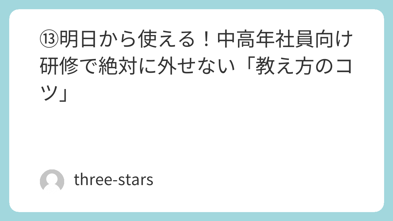 ⑬明日から使える!中高年社員向け研修で絶対に外せない「教え方のコツ」