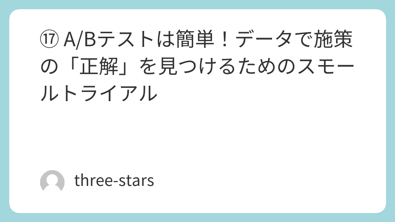 ⑰ A/Bテストは簡単!データで施策の「正解」を見つけるためのスモールトライアル