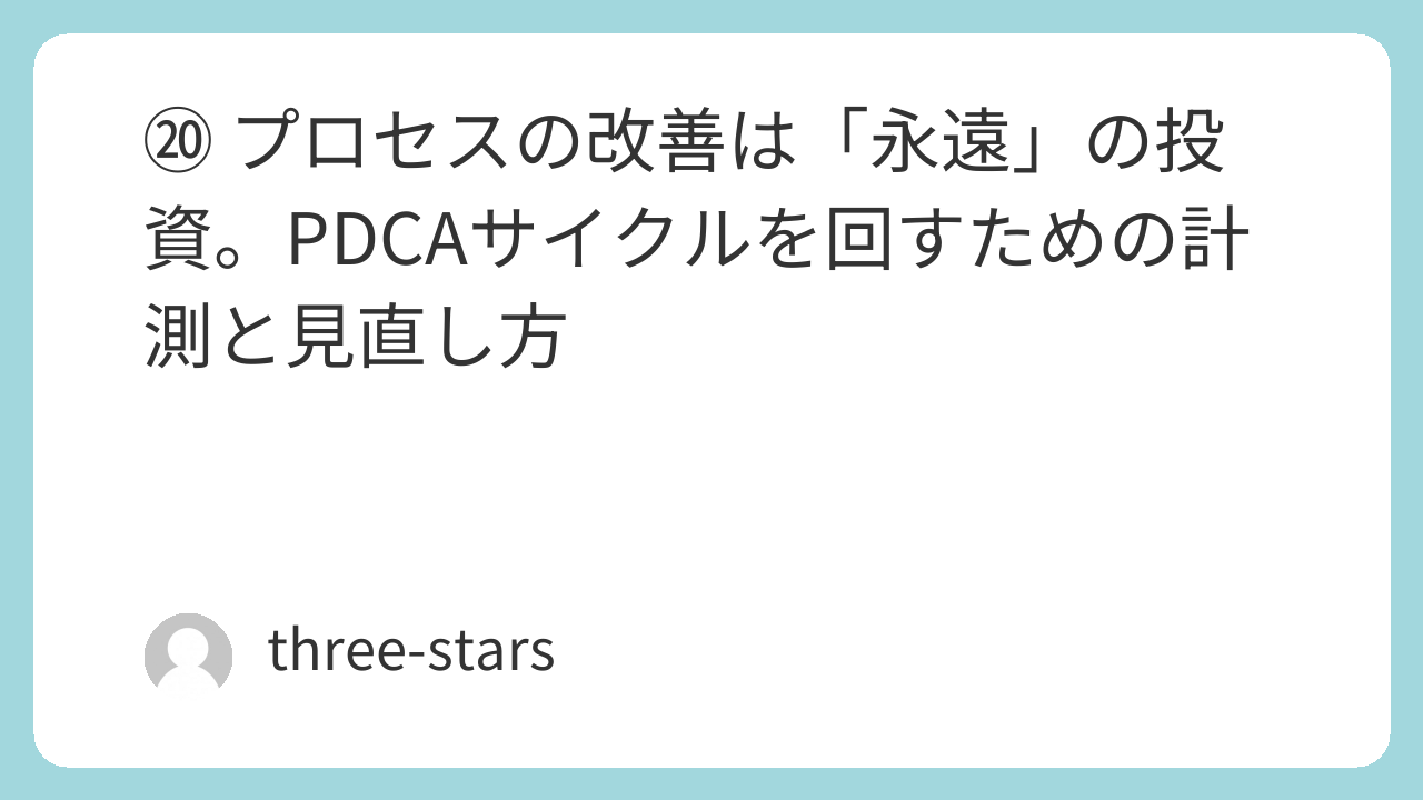 ⑳ プロセスの改善は「永遠」の投資。PDCAサイクルを回すための計測と見直し方