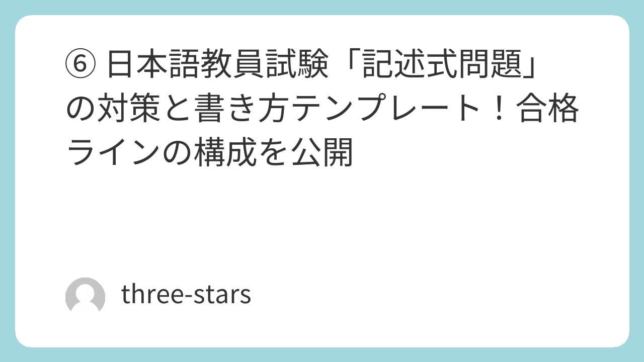 - 重要: 自分の主張を裏付けるために、日本語教育能力検定試験の出題範囲に含まれる専門用語(例:バランシングアクト、習得順序、中間言語)を適切に使用し、具体的な教育現場の事例と関連付けられているか。