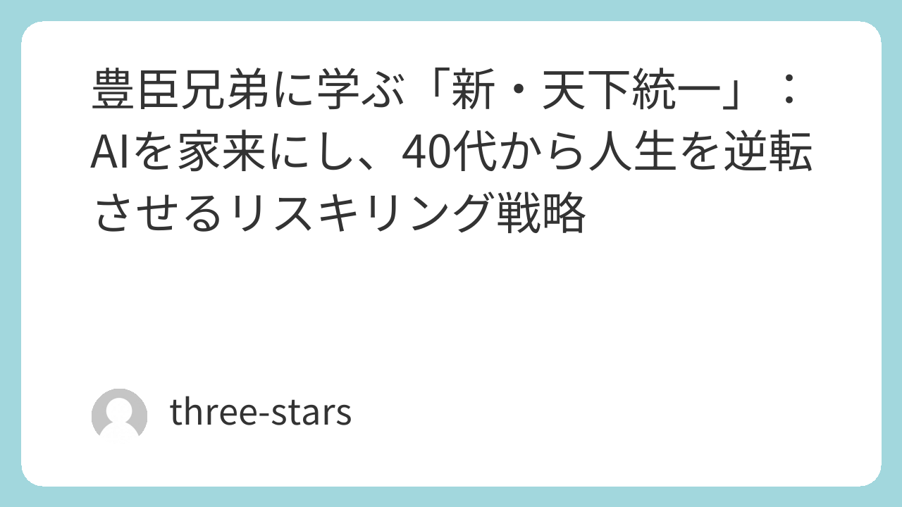 2026年。組織という大きな城が崩れゆく中で、自分一人、あるいはAIという家来を連れて、新しい領地(市場)を開拓しに行く。そんな「豊臣兄弟」のような野心と戦略を持った人にとって、今は最高に面白い時代です。