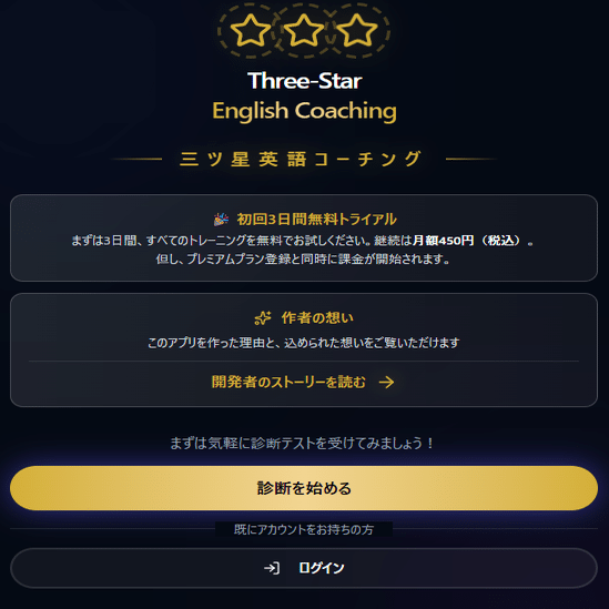 もう一つは、「学習者の覚悟」のためです。 コーチとして多くの方を見てきましたが、「無料のもの」よりも「自ら投資したもの」の方が、継続率は圧倒的に高まります。 「一ヶ月コーヒー数杯分の投資で、人生を変える英語力を手に入れる」 その覚悟に応えるだけの価値を、私はこのアプリに注ぎ込みました。